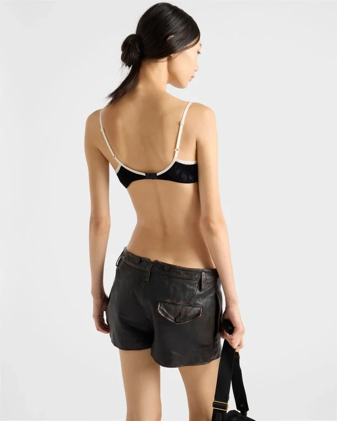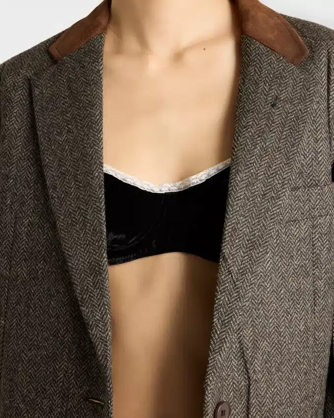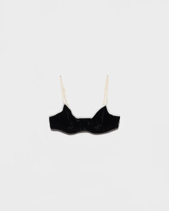 This Velvet Bra Has an Alluring Retro Design and is Trimmed with Lace in a Contrasting Color.