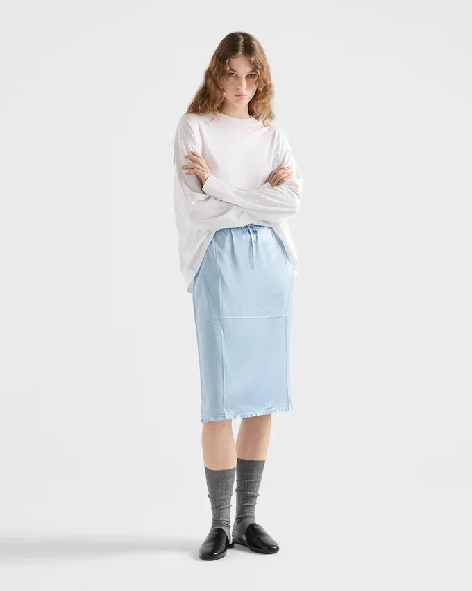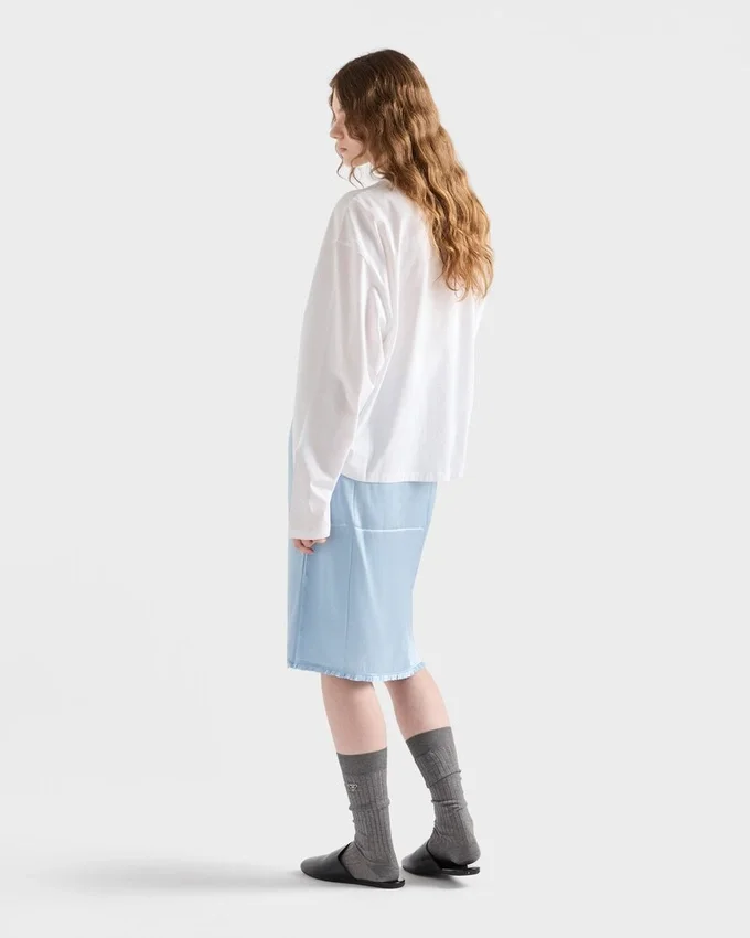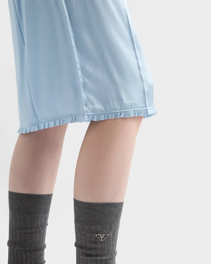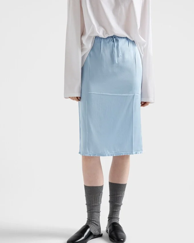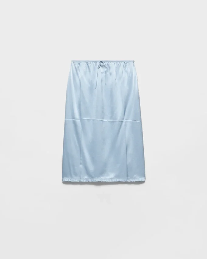 This Elegant and Delicate Underskirt Made of Satin Features Romantic Details and Iconic Touches. The Garment is Defined by Pleats and a Light Crumpled Effect, a Distinctive Feature of Prada Collections.