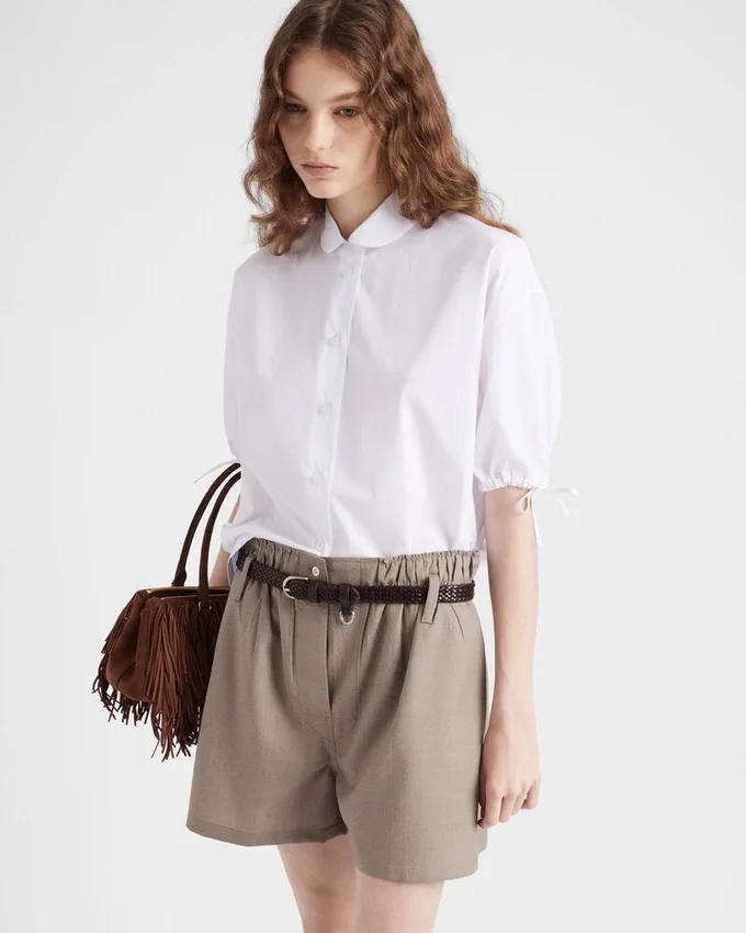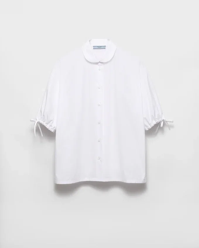 Romantic and Delicate Details Enrich the Design of This Shirt with Vintage Allure. The Poplin Style with a Short-Sleeved Silhouette and Straight Lines is Decorated with the Iconic Tonal Triangle Logo.