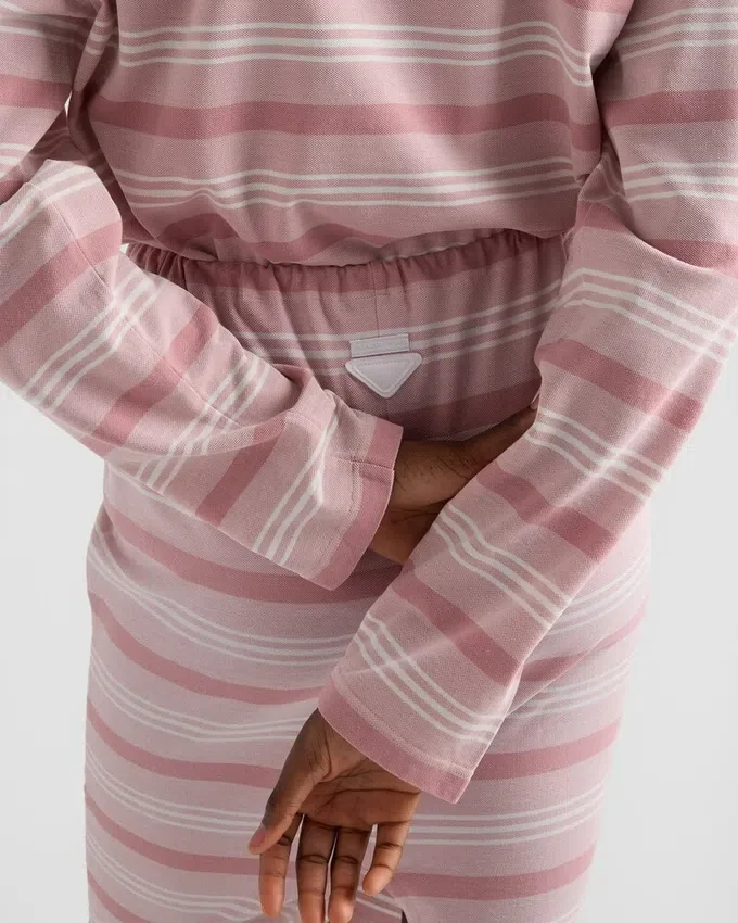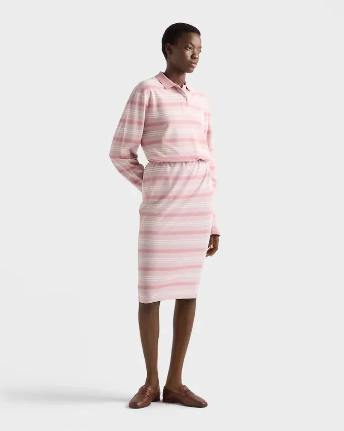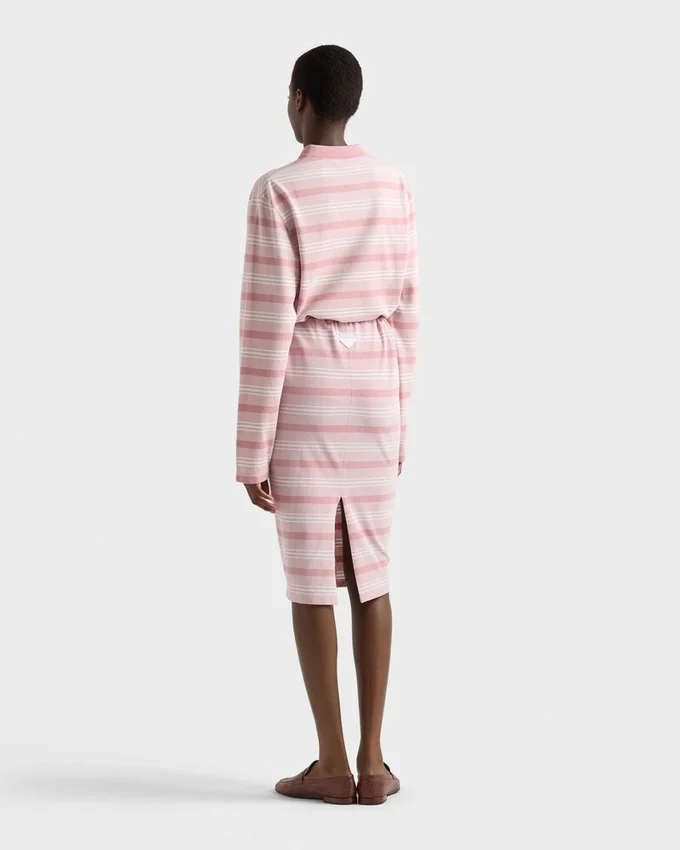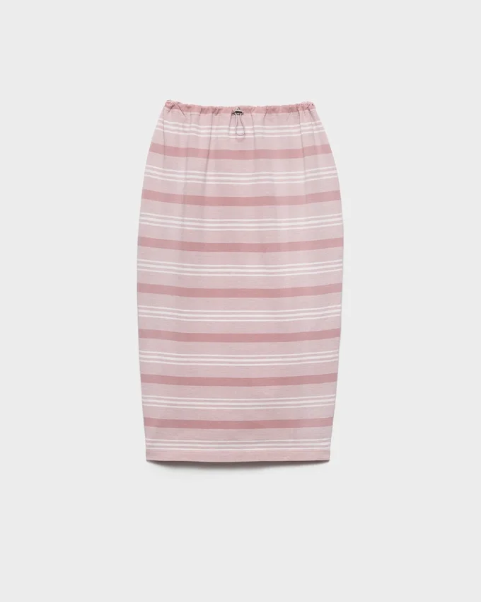 A Lively, Retro-Inspired Stripe Motif Animates This Midi-Skirt with Drawstring Waist. The Triangle Logo on the Back Adds a Distinctive Note to the Style.
