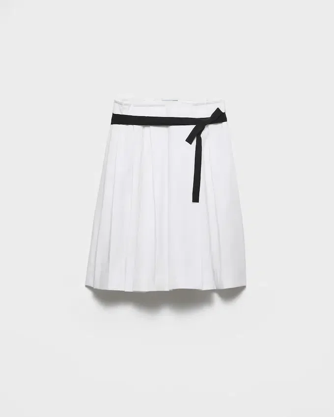 A Silhouette with Retro References Meets Prada’s Creative Energy in This Skirt with a Belt at the Waist Defining a New Expression of Contemporary Femininity.