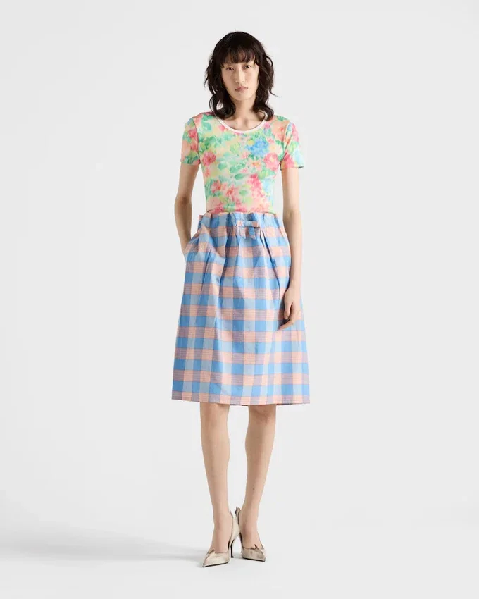 The Codes of Femininity Are Recontextualized and Combined in Designs with Novel Proportions. This Skirt Features a Structured Silhouette, Draped at the Waist and Animated by a Check Motif with Vintage Charm.