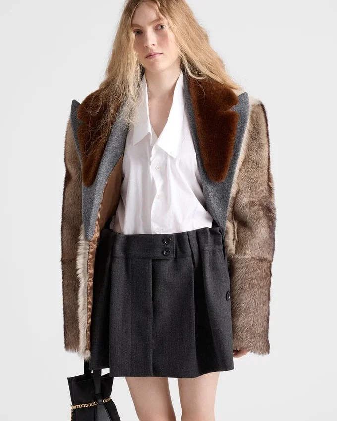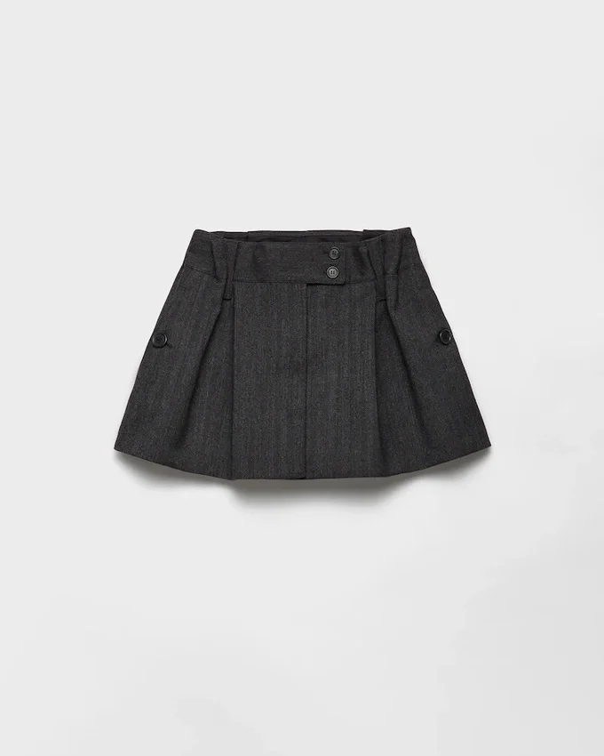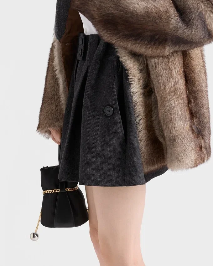 The Unique Silhouette of This Mini Skirt Redefines Both the Shape and Meaning of a Key Piece in the Feminine Wardrobe. The Design Features a Soft, Draped Effect, Enhanced by the Refined Texture of Chevron Wool.