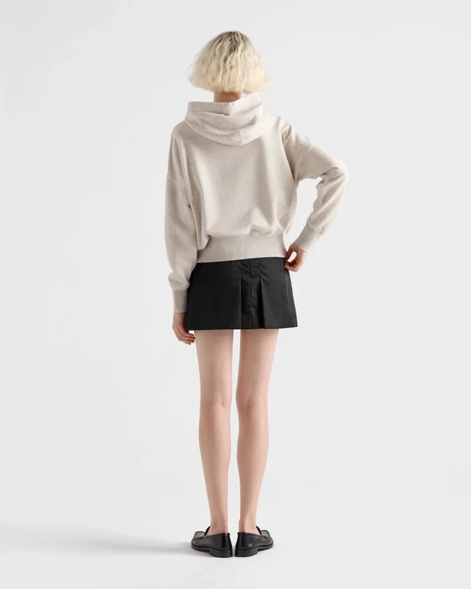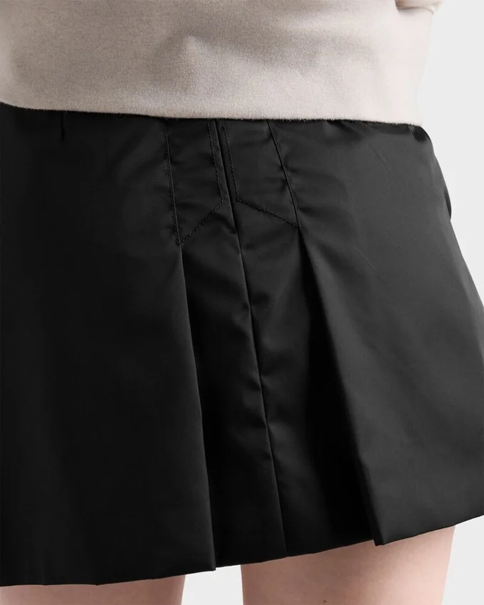 This Re-Nylon Miniskirt with Hybrid Style Combines Feminine Allure with the Functional, Sporty Character of Regenerated Nylon. The Style with Pleats on the Front and Back is Decorated with the Iconic Enameled Metal Triangle Logo. For Sustainable Care to Preserve the Product’s Characteristics and Reduce Microfiber Shedding, We Recommend Not Washing the Item Too Often. Let the Product Air out After Every Use and Have It Dry Cleaned at a Specialized Ecological Dry Cleaners.