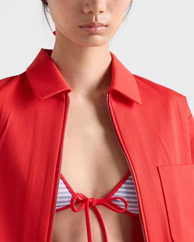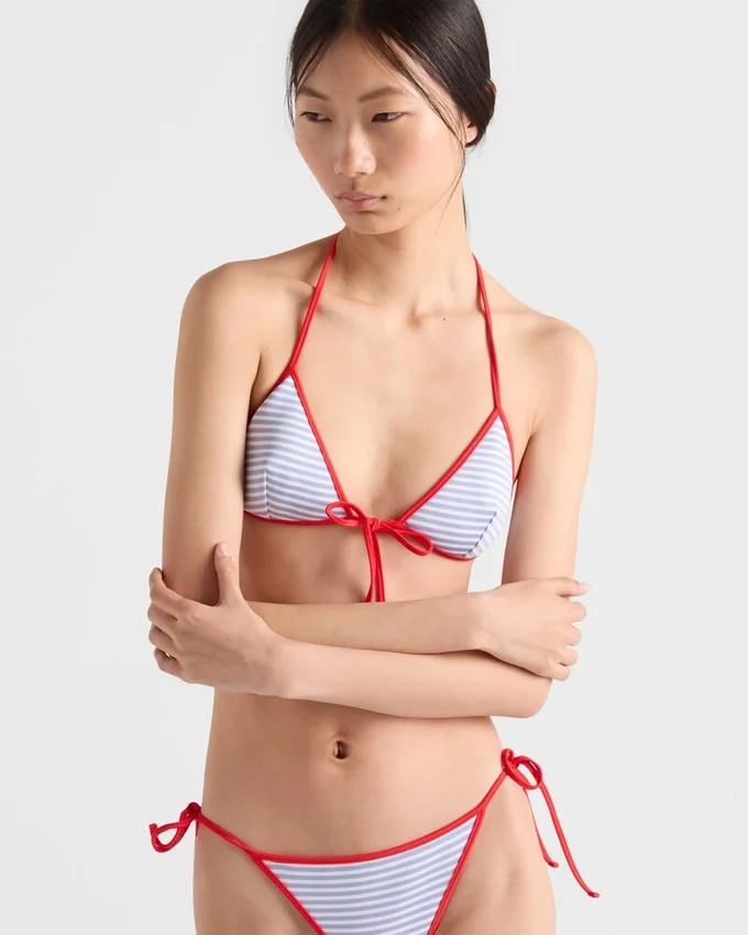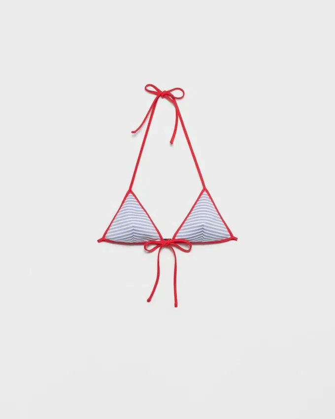 This Bikini Top Made of Interlock Jersey Has a Simple Triangle Silhouette with Spaghetti Straps, Embellished with the Iconic Enameled Metal Triangle Logo.
