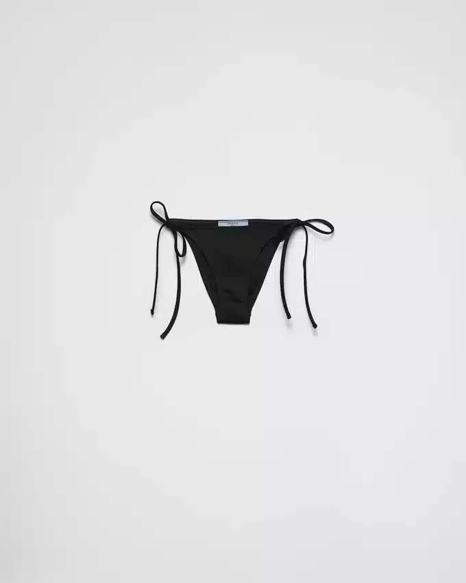 This Low-Rise Bikini Bottom with a Sleek, Contemporary Design is Completed with Side Ties. The Enameled Metal Triangle Logo Enhances the Style, Giving It an Iconic Note.