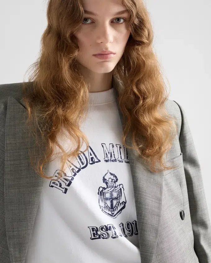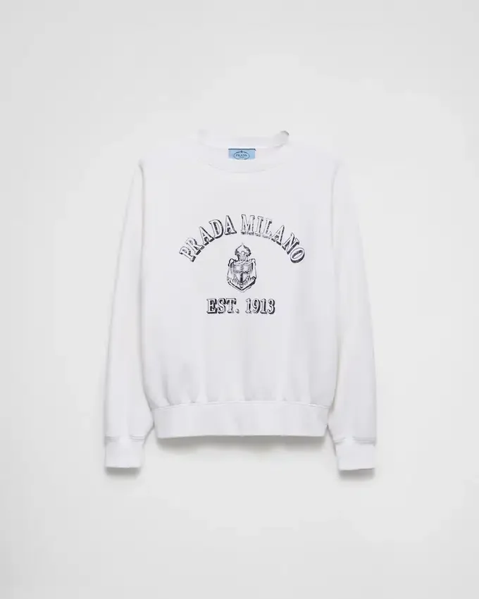 The College Style, Blending Sporty Elements and Retro Touches, Inspires the Design of This Cotton Fleece Sweatshirt with a Used Finish. The Vintage Charm of the Style is Emphasized by the Printed Logo in a Contrasting Color, While the Knit Triangle Adds an Unexpected Touch of Texture and Color.