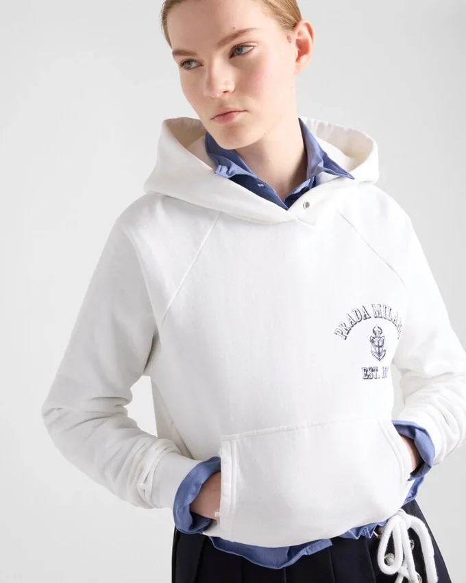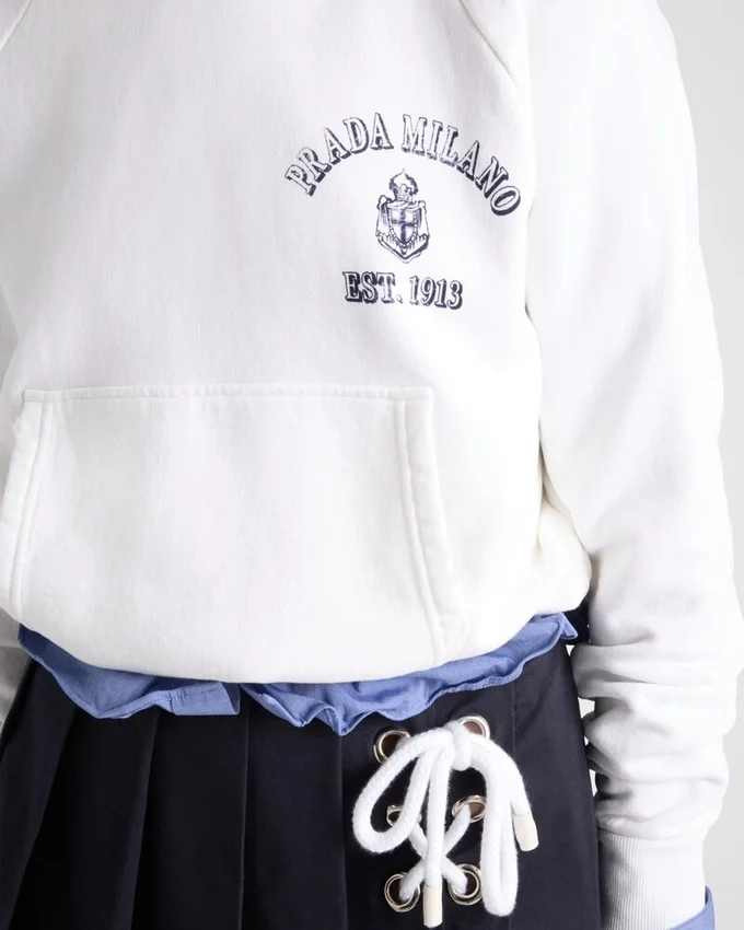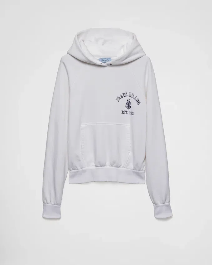 Sporty Style and Retro Details Are Combined in the Design of This Cotton Fleece Hoodie, a Reinterpretation of Classic College Styles. Made with Artisanal Techniques That Create a Used Finish, the Garment is Completed with a Charming Vintage-Look Logo and the Iconic Knit Triangle.