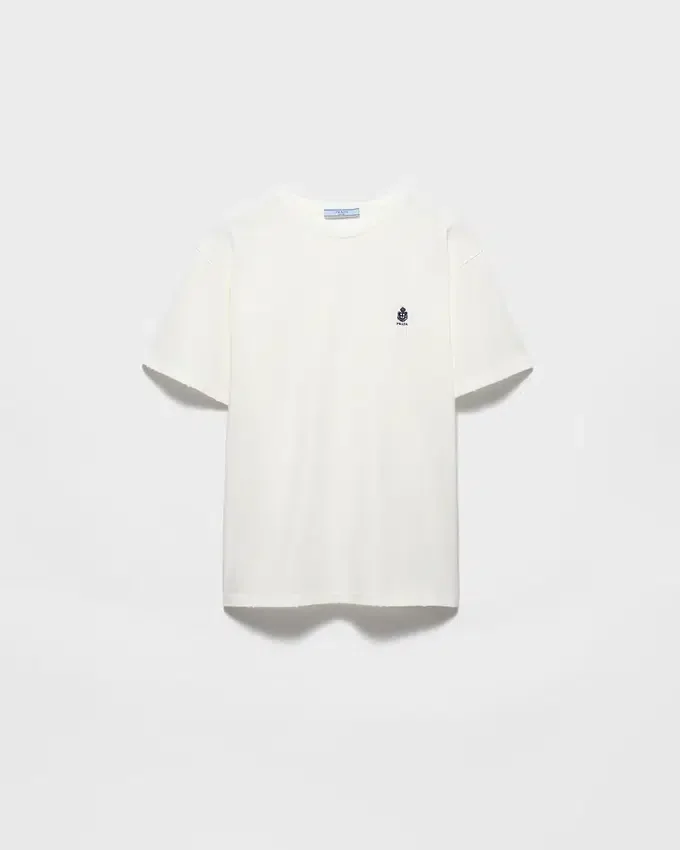 The Distinctive, Minimalist Logo in a Contrasting Color That Enriches This Tee with a Classic Cut Introduces a New Form of Expression for the Brand Identity. A Symbol of Authenticity and Connection, It Combines Craftsmanship and Modernity in a Balance of Understatement and Character, Embodying the Harmonious Strength of Prada Elegance.