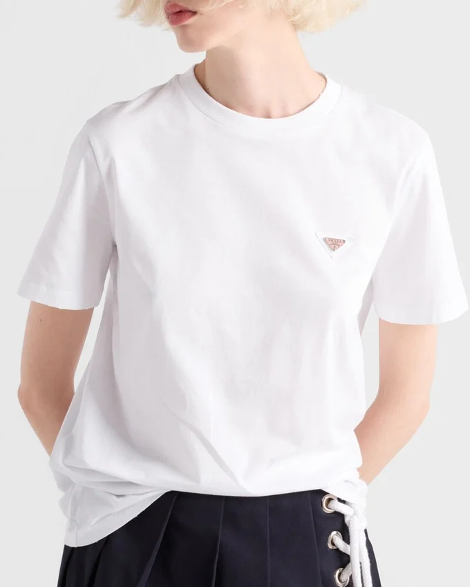 This T-Shirt is Made of Jersey Treated to Create a Light Distressed Effect. The Relaxed Fit Style is Decorated with the Enameled Metal Triangle Logo.