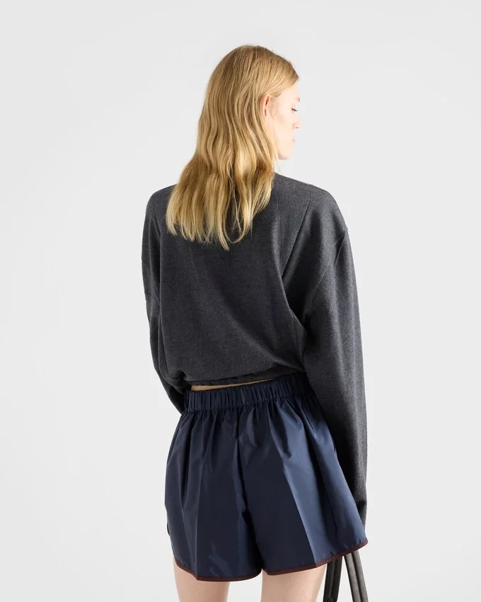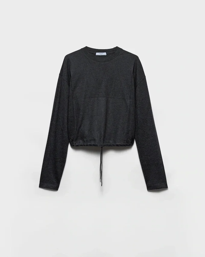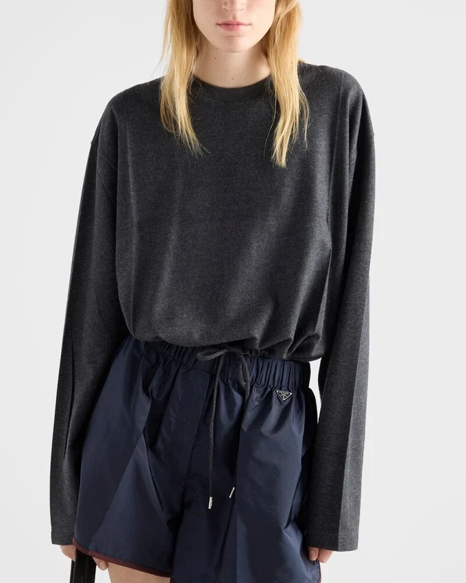 This Wool and Cashmere Jersey Tee Has a Casual Design with Sporty Details. The Soft Silhouette with Drawstring Hem is Decorated with the Tonal Triangle Logo.