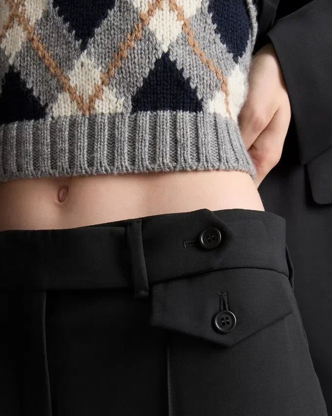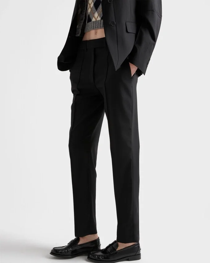 These Menswear-Style Pants with a Tapered Cut and Sartorial Details Are Made of Lightweight Wool and Completed with the Tonal Fabric Triangle Logo.