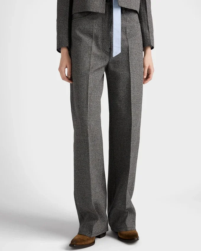 Tailored Pants Are Reinterpreted with a Relaxed Fit Silhouette, an Expression of Casual, Contemporary Elegance. The Moulina Wool Garment Enriched by the Prince of Wales Check Motif Has a Soft Cut and Wide-Leg Silhouette.