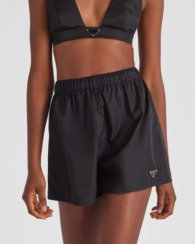 These Shorts Are Characterized by a Sporty Cut Inspired by Activewear. Prada’s Iconic Logo, the Enameled Metal Triangle Logo, Decorates This Garment Made of Innovative Re-Nylon, a Regenerated Nylon Yarn Produced from Recycled and Purified Plastic Materials Collected in the Ocean. For Sustainable Care to Preserve the Product’s Characteristics and Reduce Microfiber Shedding, We Recommend Not Washing the Item Too Often. Let the Product Air out After Every Use and Have It Dry Cleaned at a Specialized Ecological Dry Cleaners.