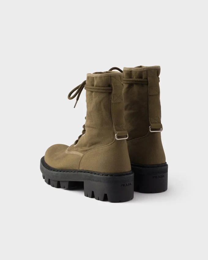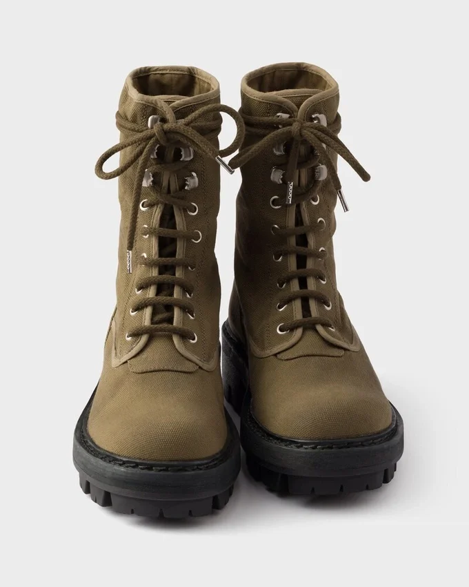 Utility Details and Bold Volumes Define These Lace-Up Ankle Boots with a Distinctive Style. Made of Canvas, a Material That Underlines the Pragmatic Essence of Workwear-Inspired Design, the Boots Have Oversized Rubber Soles That Provide Structure and Comfort.