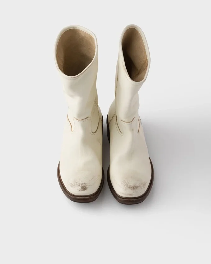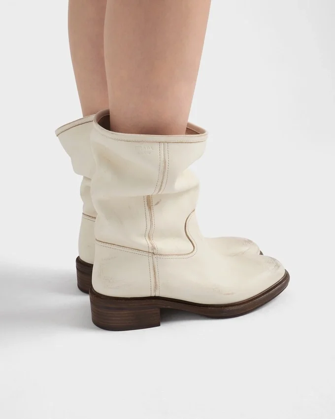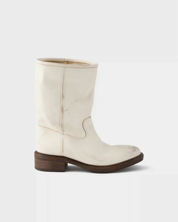 Vintage-Effect Leather Boots