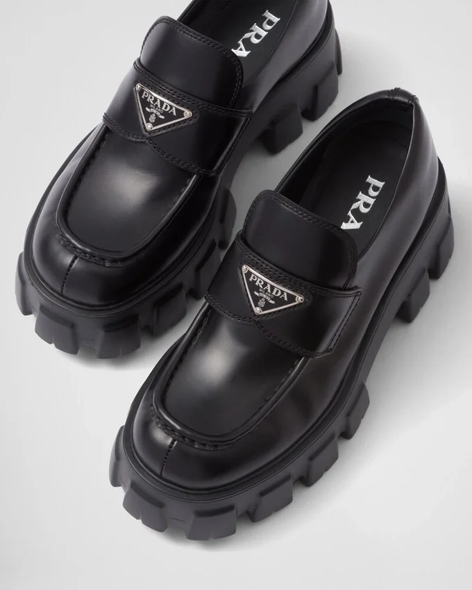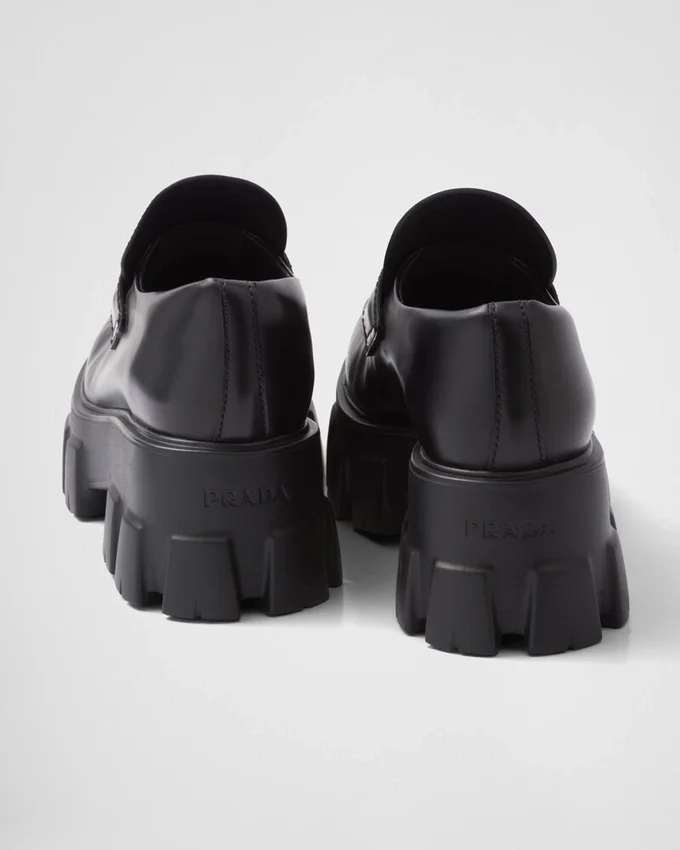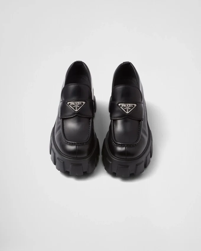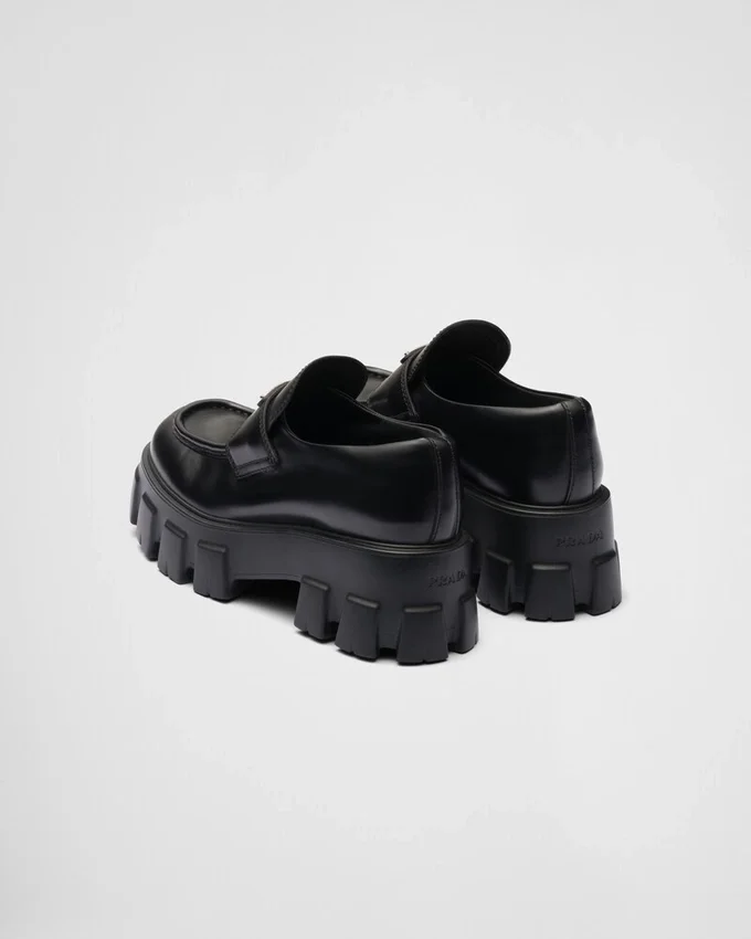 The Monolith Loafers Made of Prada’s Iconic and Elegant Brushed Leather Reinterpret the Classic Penny Loafer in an Original and Contemporary Way. This Shoe, Which Takes Its Name from the Chunky Rubber Sole, is an Expression of Timeless Design That is Monolithic and Unique for Its Research, Innovation, and Style.