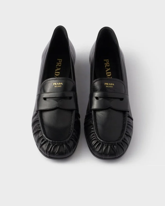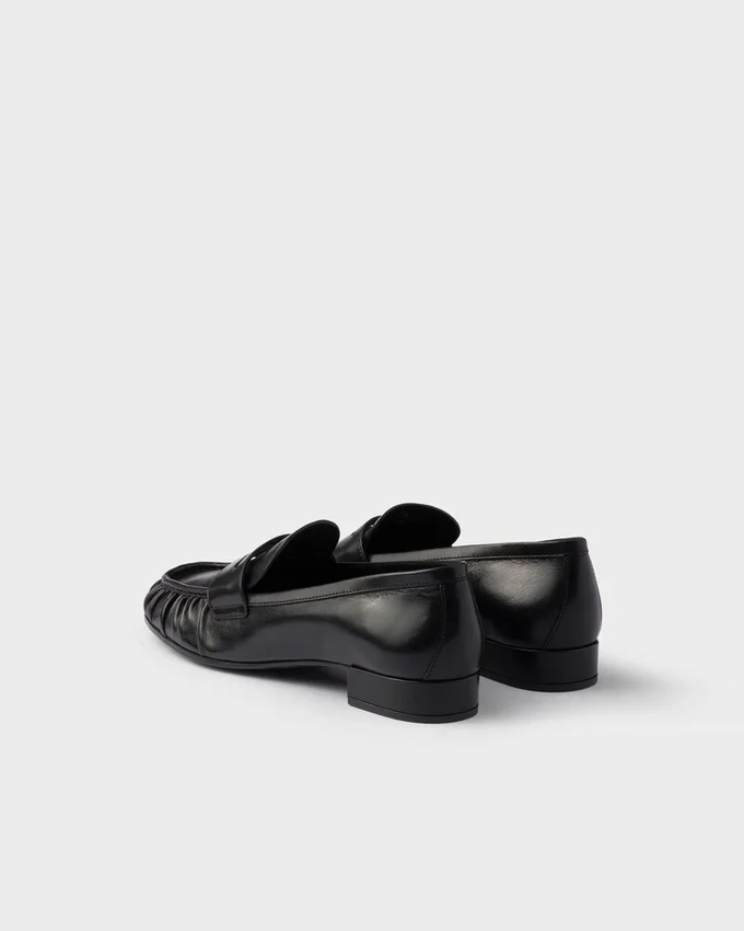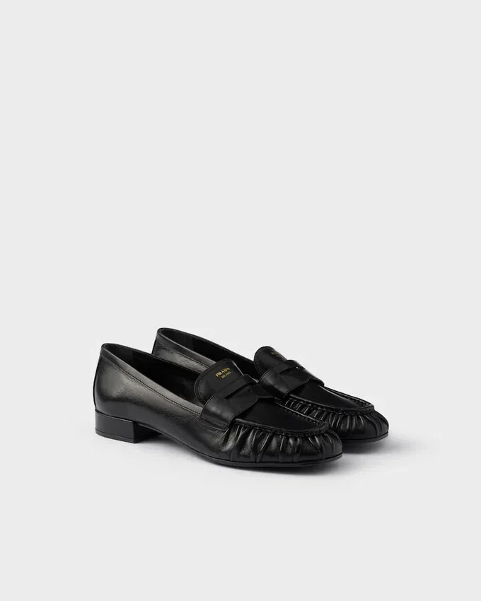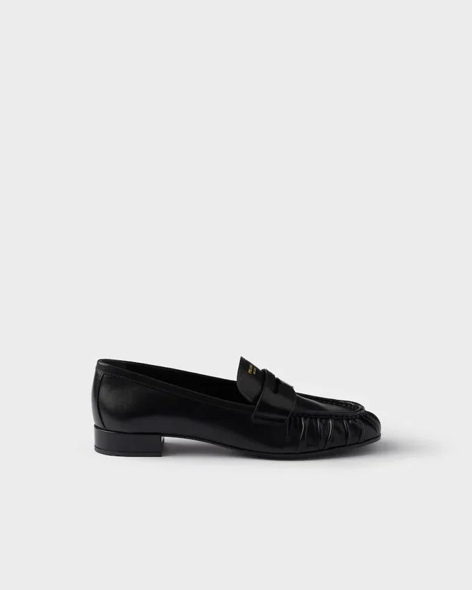 These Leather Loafers Feature a Tapered Silhouette with Classic Details. The Low-Heeled, Round-Toe Style Emphasized by Soft Stitching is Embellished with the Lettering Logo.