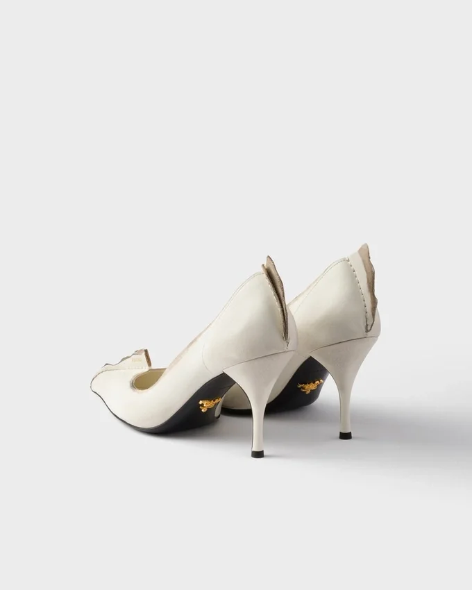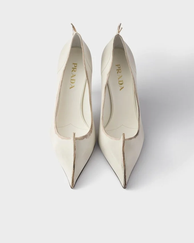 Strong Lines and Bold Details Transform the Pump, an Emblem of Femininity, in an Original and Unconventional Design. The Pointy-Toe Silhouette in Antiqued Leather Has Visible Stitching and Raw-Cut Edges Intentionally Left Unfinished. The Stiletto Heel Completes the Tapered Shoe, an Expression of Multifaceted Style.