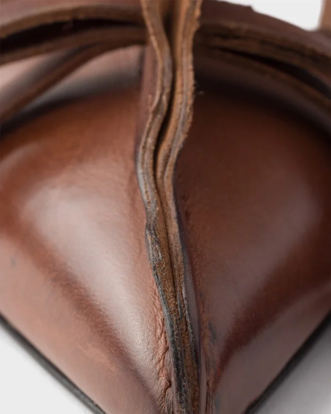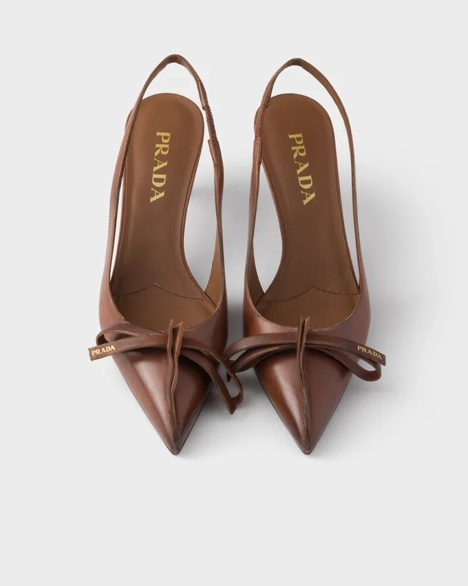 Strong Lines and Bold Details Transform the Slingback Pump, an Emblem of Femininity, into an Original and Unconventional Design. The Pointy-Toe Silhouette in Antiqued Leather Has Visible Stitching and Raw-Cut Edges Intentionally Left Unfinished. A Refined Kitten Heel Completes the Tapered Shoe, an Expression of Multifaceted Style.