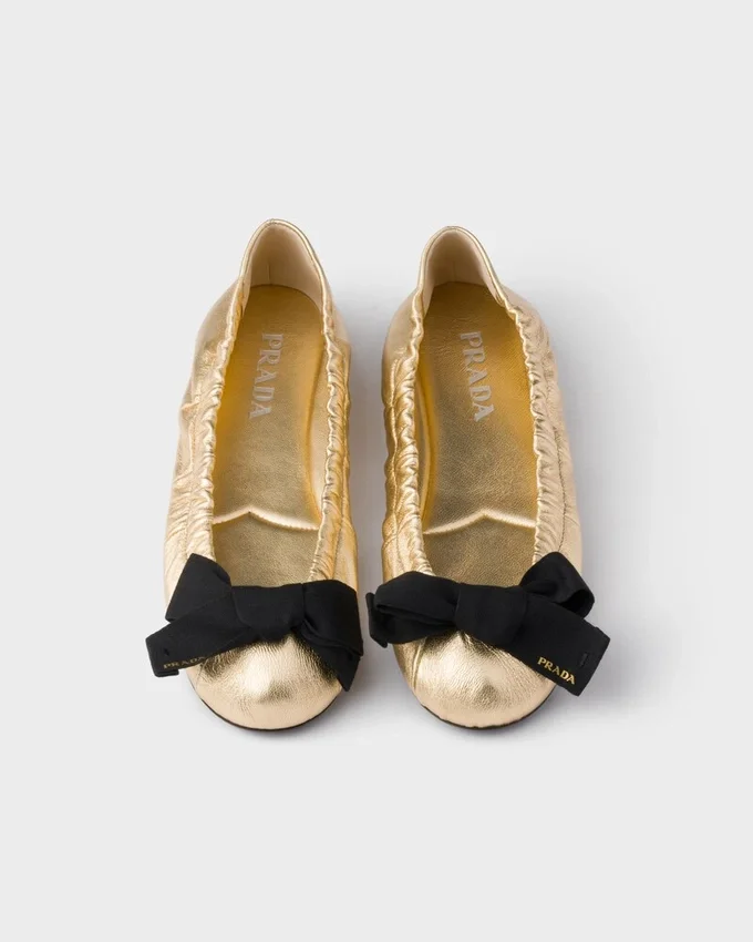 These Ballerina Flats, Both Delicate and Bold, Combine the Elegance of a Feminine Silhouette with the Distinctive, Lustrous Finish of Mordora Nappa Leather. The Tapered Style with Round Toe is Embellished with Refined Fabric Bows.