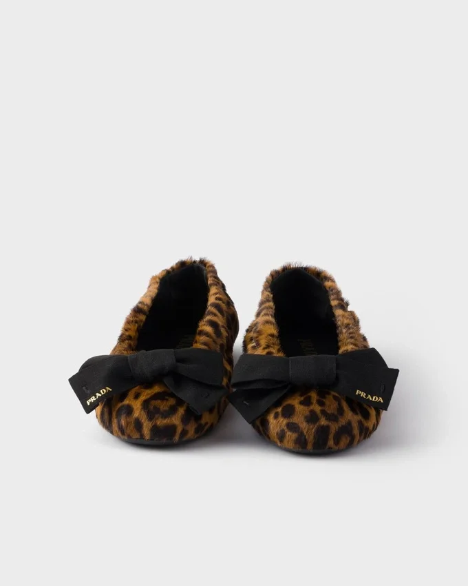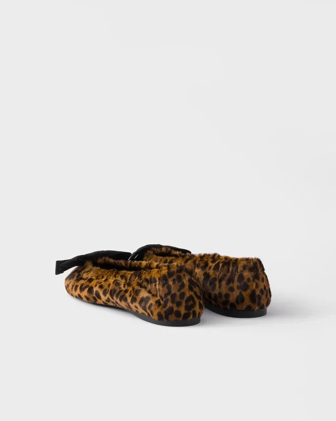 These Ballerina Flats, Both Delicate and Bold, Combine the Elegance of a Feminine Silhouette with the Distinctive Character of the Animal Print Leather. The Tapered Style with Round Toe is Embellished with Refined Fabric Bows.