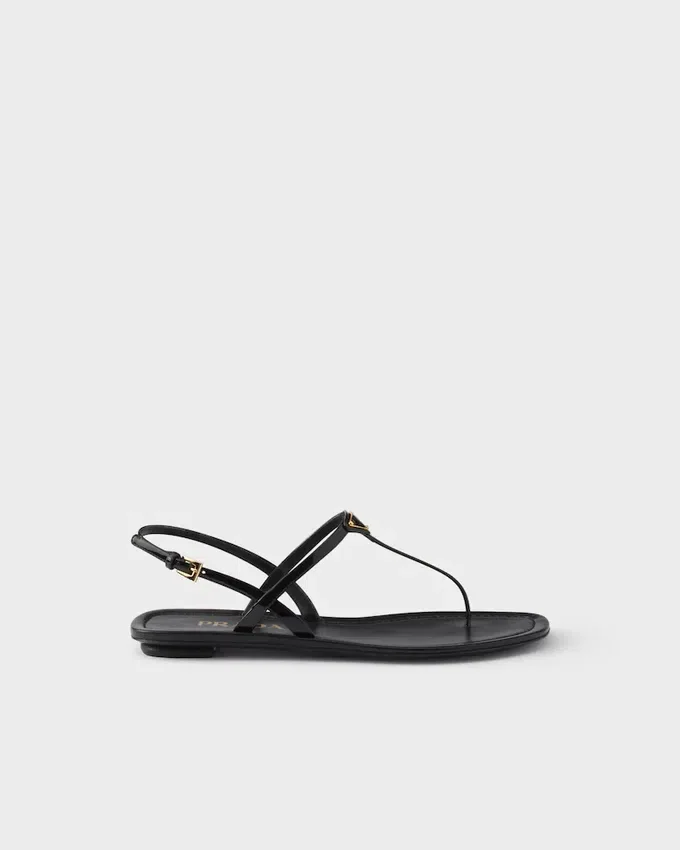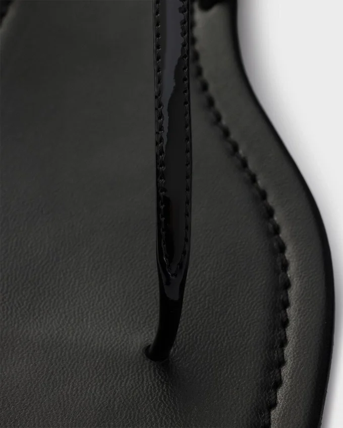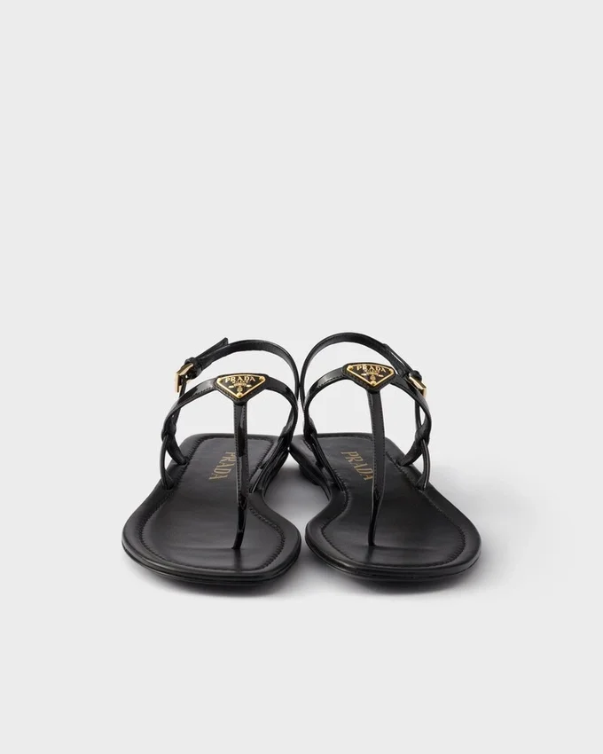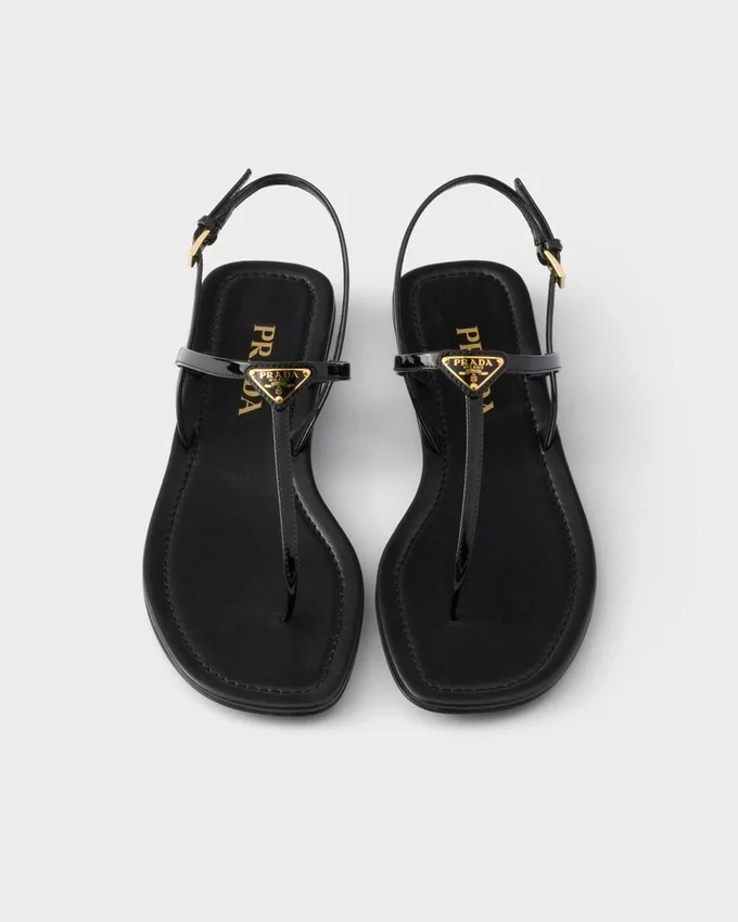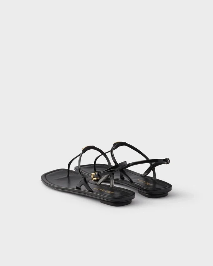 With a Design That Combines Minimalism and Comfort, These Thong Sandals Embody Casual, Contemporary Elegance. The Sleek Silhouette with Clean Lines is Emphasized by the Luminous Finish of the Patent Leather, While the Triangle Logo Triangle Completes It with a Timeless Note.