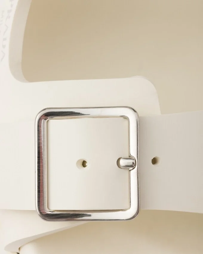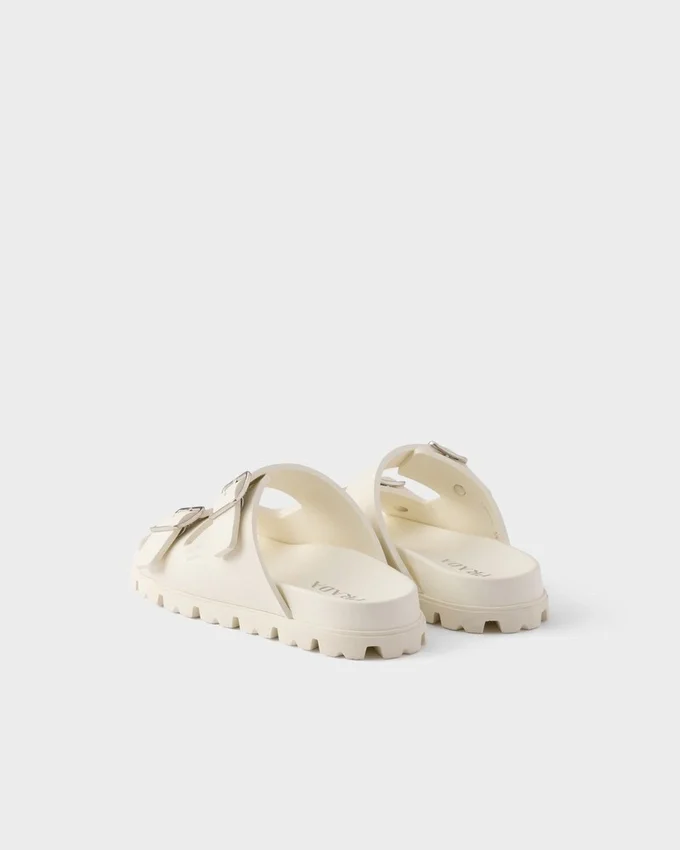 These Slides Combine Comfort with a Sleek, Contemporary Aesthetic. The Flexible and Light Rubber Sandals Are Defined by the Metal Buckles That Complete the Sporty Design.