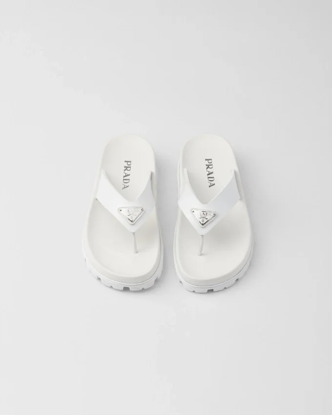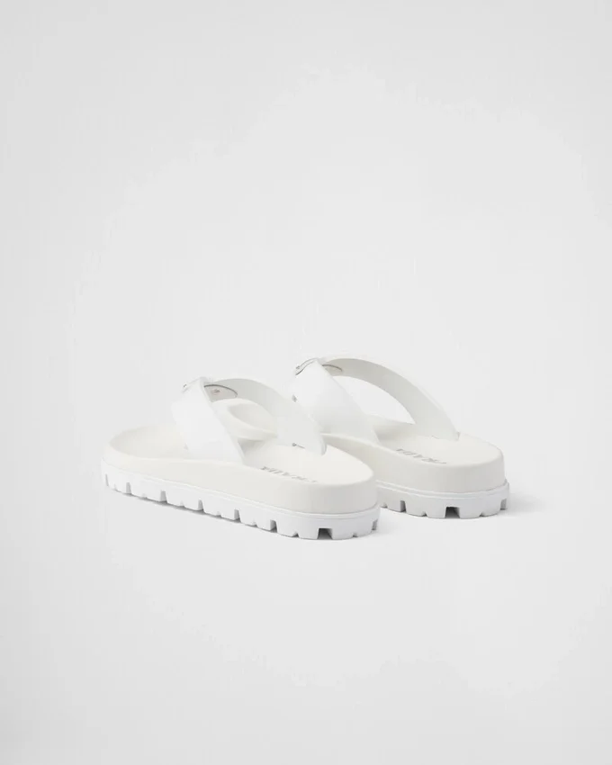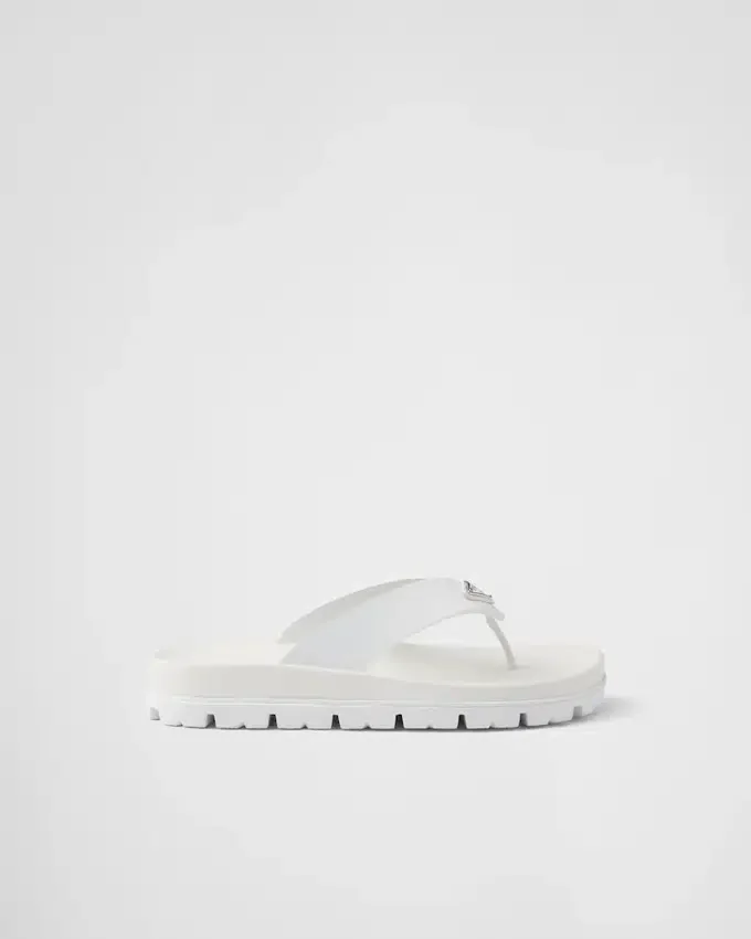 These Rubber Thong Sandals Have a Contemporary Silhouette with Sleek Details. The Style, Enriched by the Iconic Enameled Metal Triangle Logo, is Characterized by a Rubber Sole with Lug Tread That Adds a Sporty Touch.