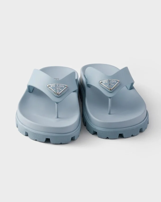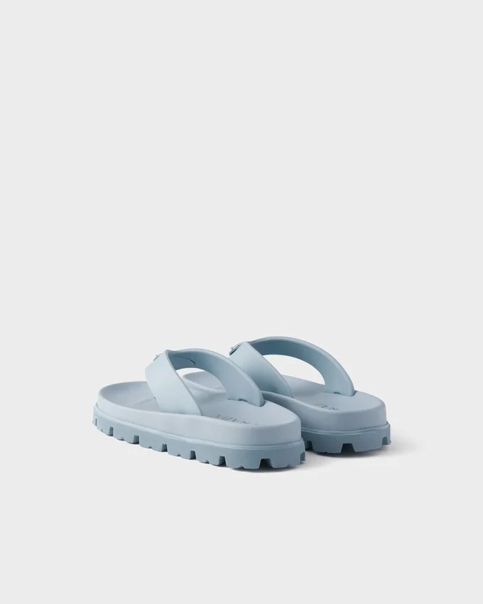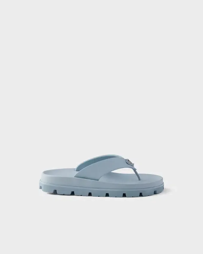 These Rubber Thong Sandals Have a Contemporary Silhouette with Sleek Details. The Style, Enriched by the Iconic Enameled Metal Triangle Logo, is Characterized by a Rubber Sole with Lug Tread That Adds a Sporty Touch.