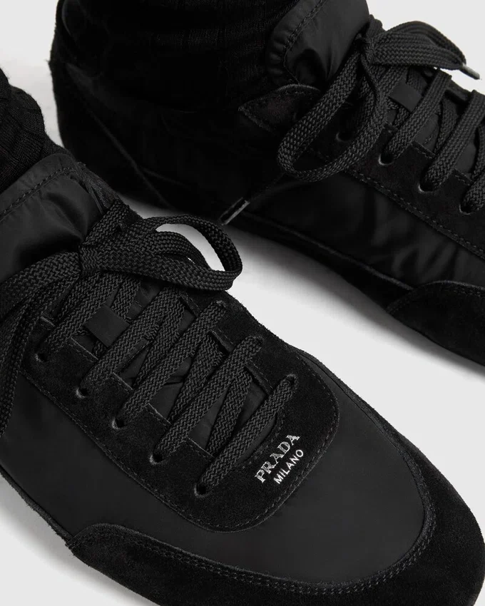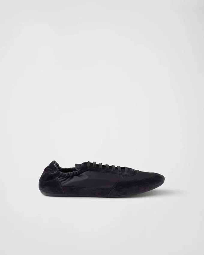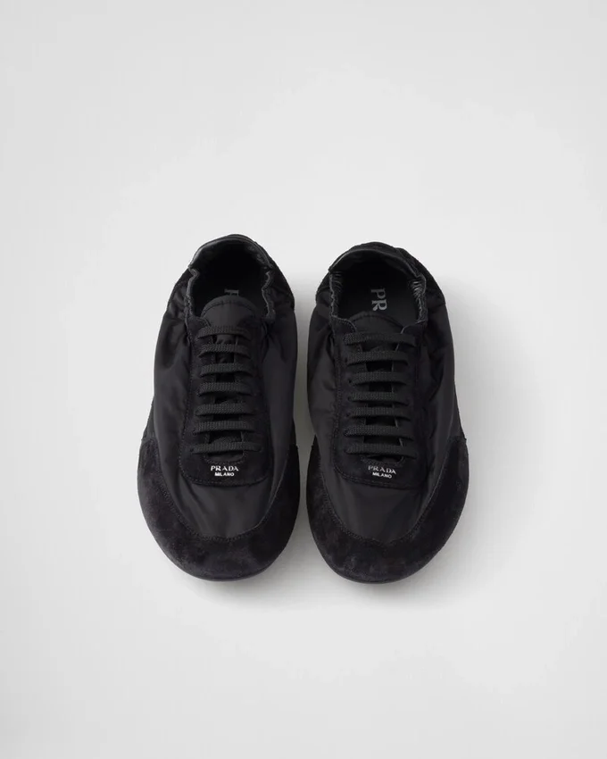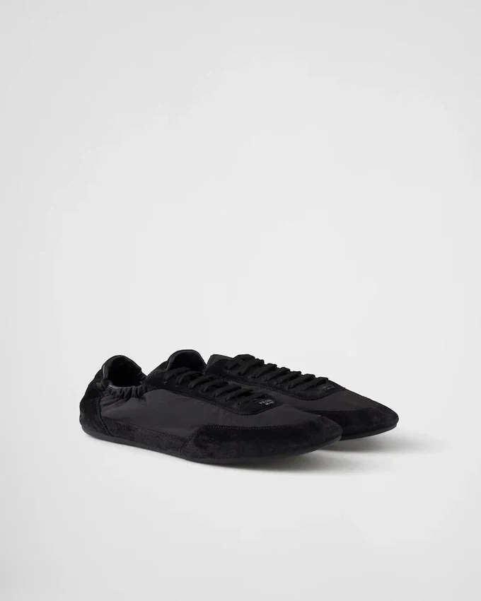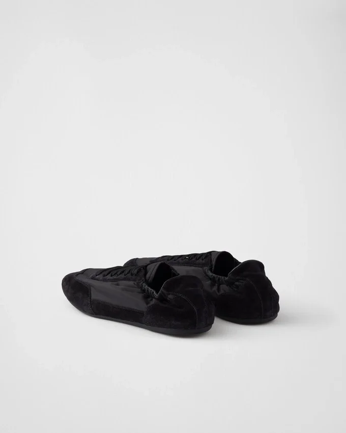 This Incredibly Lightweight Sneaker with a Structured Design Made of Re-Nylon and Suede Features a Mix of Materials That Embodies Prada’s Sporty and Artisanal Soul. Its Flat Sole Recalls the Classic Ballerina, Enriched with Elastic on the Sides That Makes It Easy to Slip on. This Product Does Not Contribute to the Sea Beyond Educational Program.
