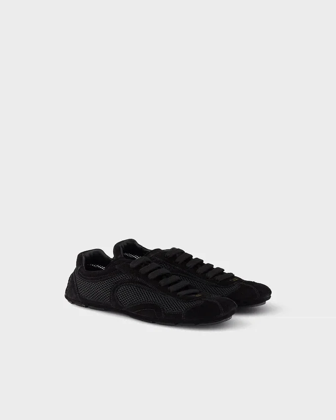 Presented in 2005 for the Linea Rossa Collection, Montecarlo Sneakers Combine Style and Comfort in a Sophisticated and Innovative Design. In This New Interpretation, the Footwear Returns with a Soft, Flexible Upper in Suede and Mesh. The Silhouette Inspired by Driving Shoes is Characterized by Deconstructed Soles That Give the Shoe a Light Look and Sleek Aesthetic.