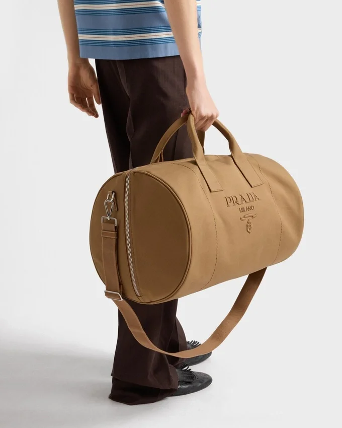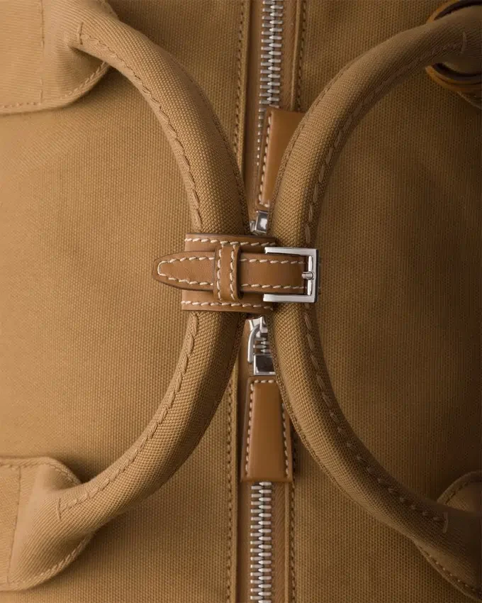 This Canvas Duffle Bag with a Light Design and Sporty Style is Enhanced with Refined Leather Details. The Roomy, Versatile Style is Characterized by a Removable Shoulder Strap, While the Tonal Embroidered Logo Completes the Accessory with a Distinctive Note.